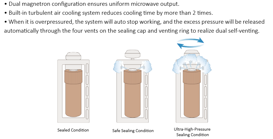 • Each digestion vessel is fixed in protection frame, providing the double protection.